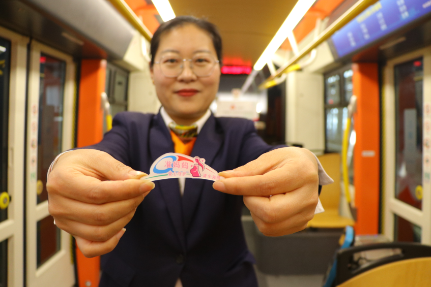 在“三八”國(guó)際婦女節(jié)來臨之際,青島有軌電車“巾幗志愿服務(wù)團(tuán)隊(duì)”將目光聚焦到車廂里,根據(jù)不同乘客人群的乘車需求,高度匹配精準(zhǔn)化服務(wù),為女性乘客打造了一列“女性友好”主題車廂。3月8日當(dāng)天,記者看到,有軌電車車廂里為哺乳期媽媽安裝了移動(dòng)式母嬰簾,為寶媽提供了安心的車廂一隅。為帶孩子乘車的乘客準(zhǔn)備了“愛心媽媽包”,里面裝有紙尿褲,濕巾,紙巾,衛(wèi)生用品等。為乘車哭鬧的兒童準(zhǔn)備了“乖乖兒童魔法袋”,里面裝有孩子們喜歡的小粘貼,小汽車等玩具。為孕期準(zhǔn)媽媽制作了“準(zhǔn)媽媽”胸牌,方便熱心乘客辨認(rèn)身份為其讓座,車廂乘務(wù)員在服務(wù)過程中也會(huì)給予特別關(guān)注和照顧。